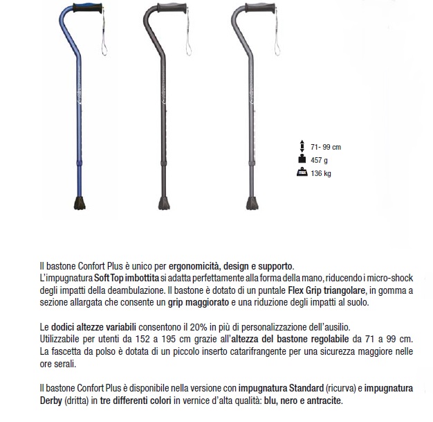 Stick with soft top padded handle to fit the shape of the hand. The stick equipped with a tip Flex Grip triangular section rubber enlarged which allows an increased grip and a reduction of the impacts to the soil. It has twelve different heights.