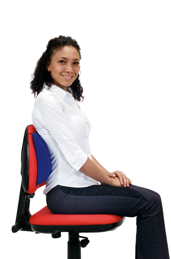Cuscino a forma semicilindrica, gonfiabile, completo di custodia. Posto tra la zona lombare e lo schienale, costituisce un supporto per la lordosi.