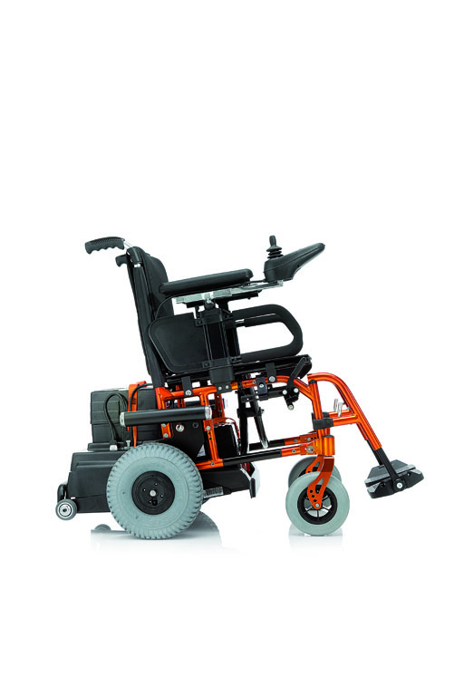 Carrozzina trasformabile da manuale a elettrica. Ha il telaio pieghevole a crociera in alluminio, ruote anteriori e posteriori regolabili su più posizioni, schienale imbottito regolabile in altezza, parafanghi con supporto in alluminio regolabili, pedana unica o sdoppiata regolabili in altezza.