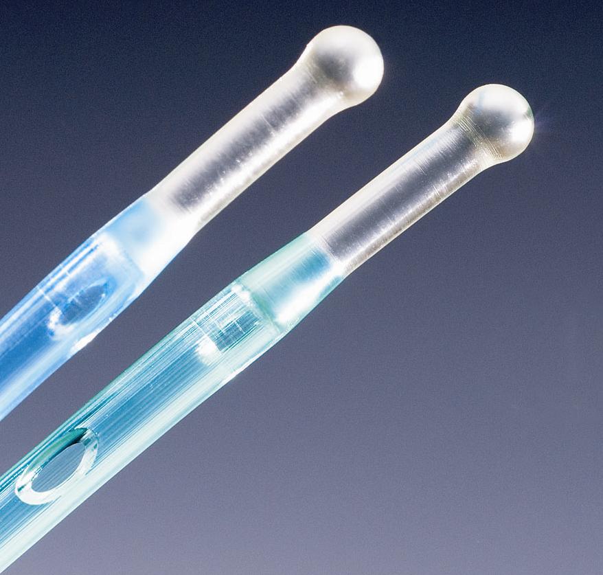 Catetere monouso autolubrificante Idrofilo a testa arrotondata e parte anteriore estremamente morbida e flessibile.