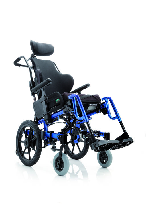 Carrozzina basculante con sistema di chiusura a crociera per uso interno ed esterno.Disponibile nelle versioni ADULT per adulti e JUNIOR per bambini.Basculamento da 0°a40°,riduzione max dell'ingombro.Telaio anteriore std c/pedane sdoppiate estraibili e girevoli all'esterno/pedane elevabili estraibili-girevoli/pedana unica.