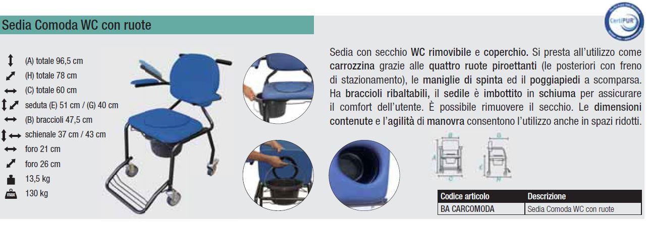 Modello: SEDIA COMODA WC CON RUOTE